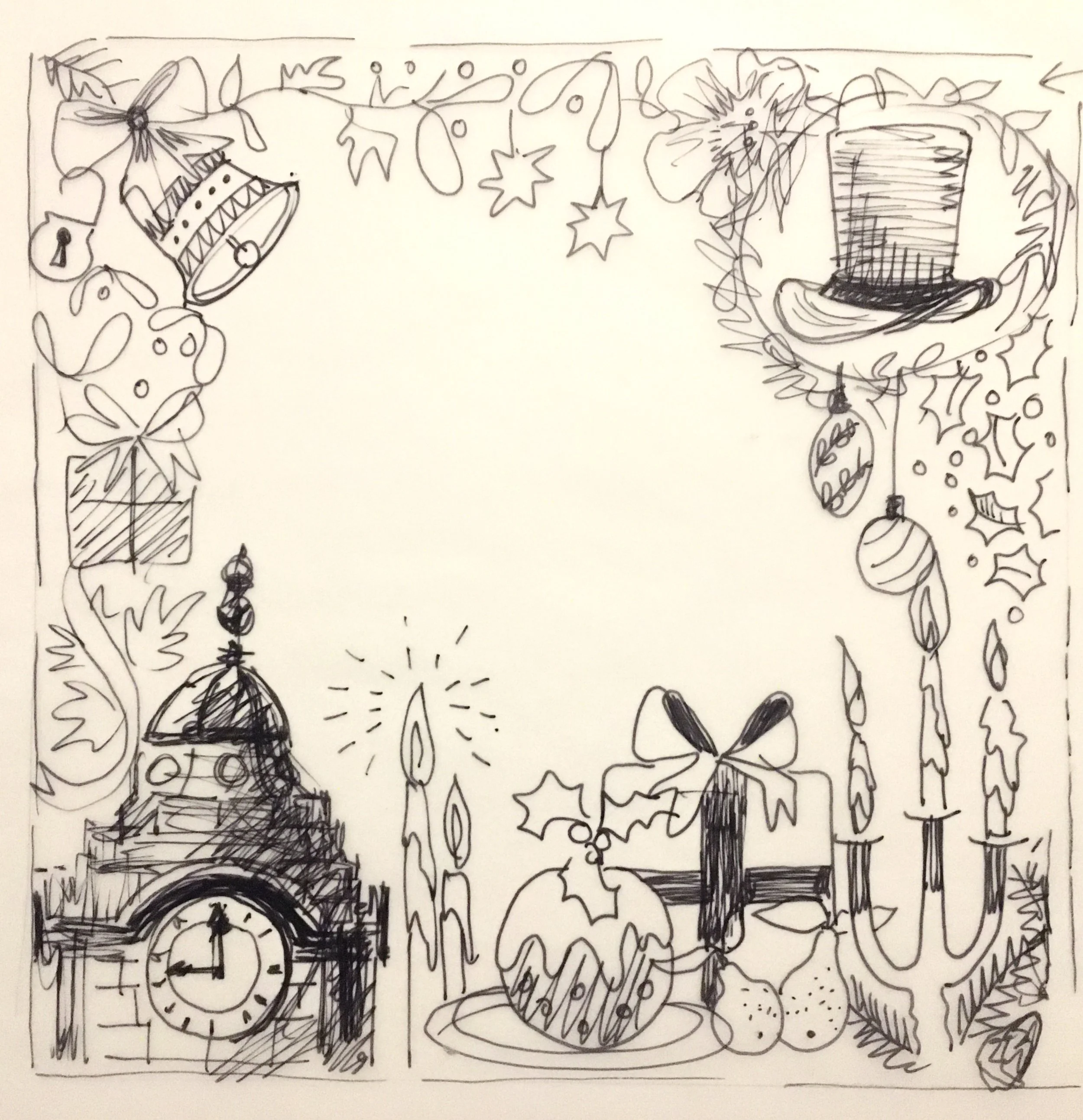 I wanted to create a design that would look full - fullness of motifs would suggest plentifulness and generosity, both personified by the Ghost of Christmas Present in ‘A Christmas Carol’. And I wanted the design to include recurring themes found in the book; time, light, warmth, benevolence, joy and living well.